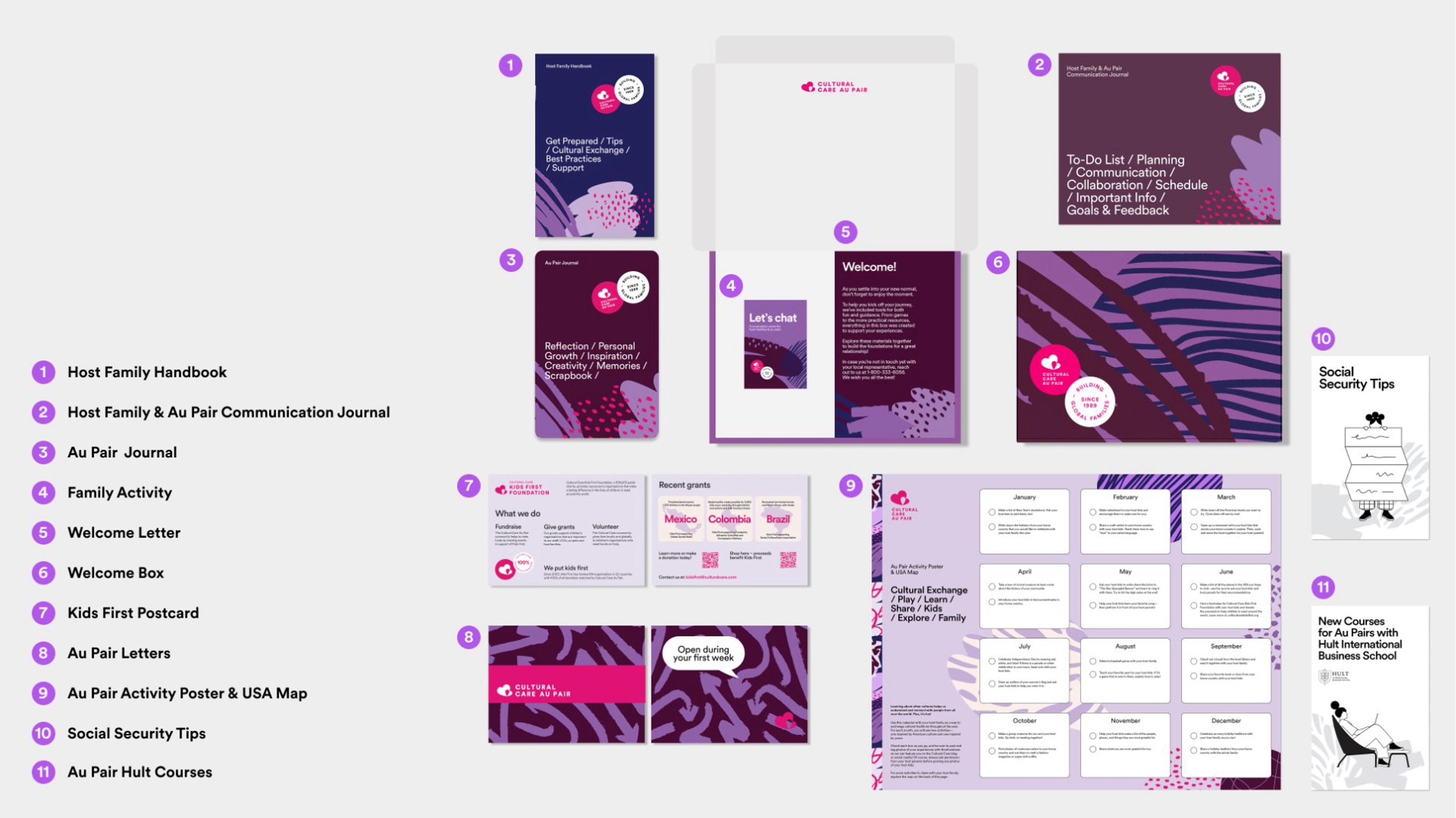 This box is filled with helpful information, activities, and resources that aim to help the host family and au pair build a strong foundation for communication, cultural exchange, and mutual understanding. From planning tools to games, each item was created to guide and enrich their relationship.